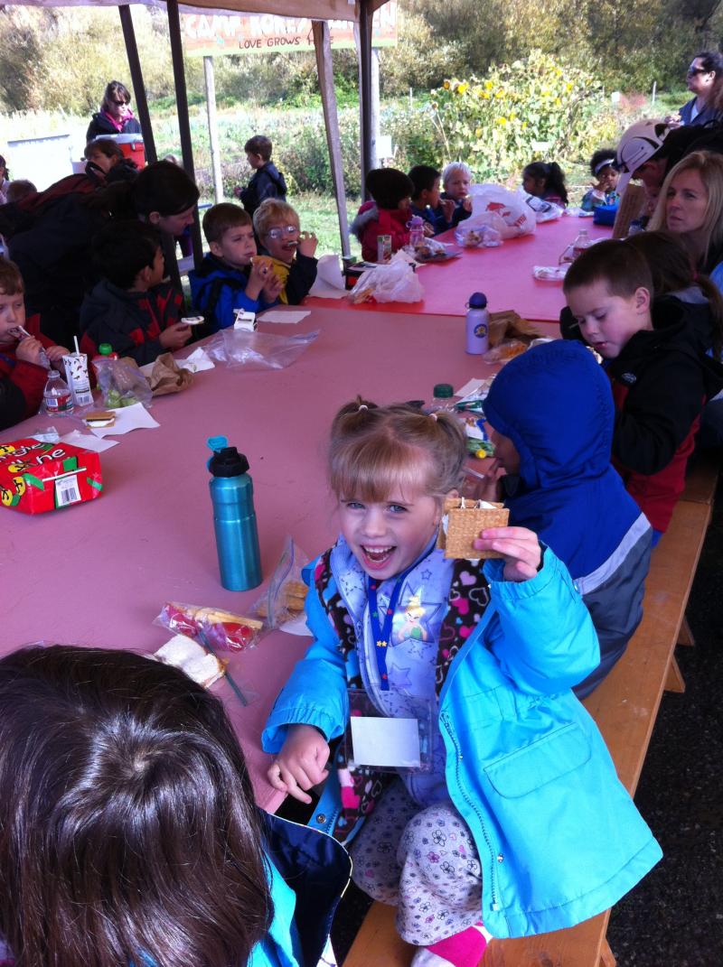 Oct 2012--Our daughter, trying a S'more at her Kindergarten field trip to the pumpkin patch. She still doesn't like mixing textures, or super sweet combos. But she tried it. I then got to eat the rest!